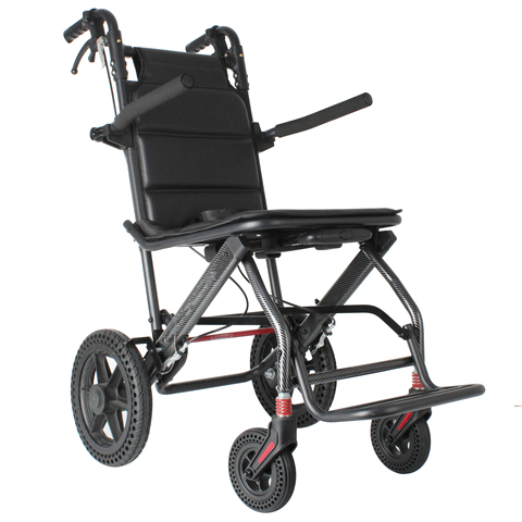 Yüksek kaliteli katlanır hafif alüminyum seyahat tekerlekli sandalye yüksek sırt ve uçak kullanımı için valiz sapı
